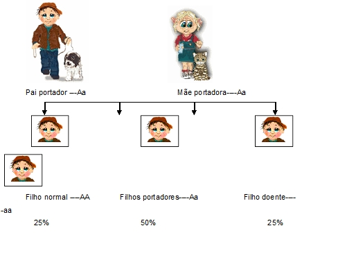 As doenças autossômicas recessivas afetam igualmente os dois sexos. Neste caso, os pais são portadores assintomáticos do gene e o risco de que seus outros filhos sejam afetados pela mesma doença é 25%.